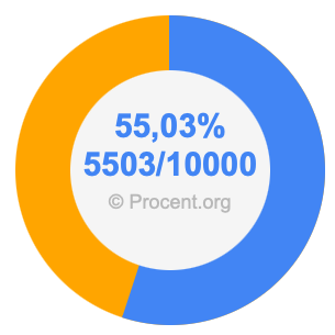 Den följande bilden visar 55,03 procent och 55,03 som bråk i ett cirkeldiagram. Som du nu vet, är 55,03% detsamma som 5503/10000.