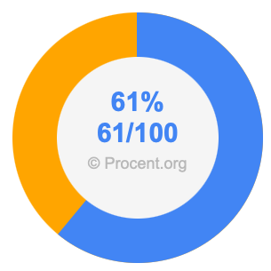 Procent betyder per hundra, så 61 procent betyder 61 per hundra. Du kan alltså sätta 61 i täljaren och 100 i nämnaren och göra 61 procent till ett bråk, så här: