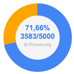 Den följande bilden visar 71,66 procent och 71,66 som bråk i ett cirkeldiagram. Som du nu vet, är 71,66% detsamma som 3583/5000.